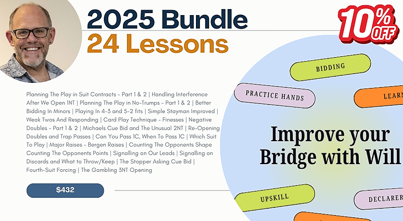 24 Lessons on Bidding Conventions, Declarer Play, competitive Auctions and much much more.....